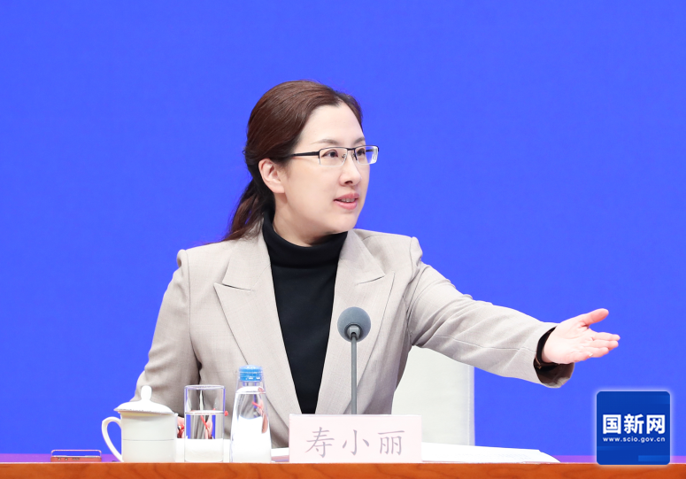 图为国务院新闻办新闻局副局长、新闻发言人寿小丽邀请记者提问。(栾海军 摄)