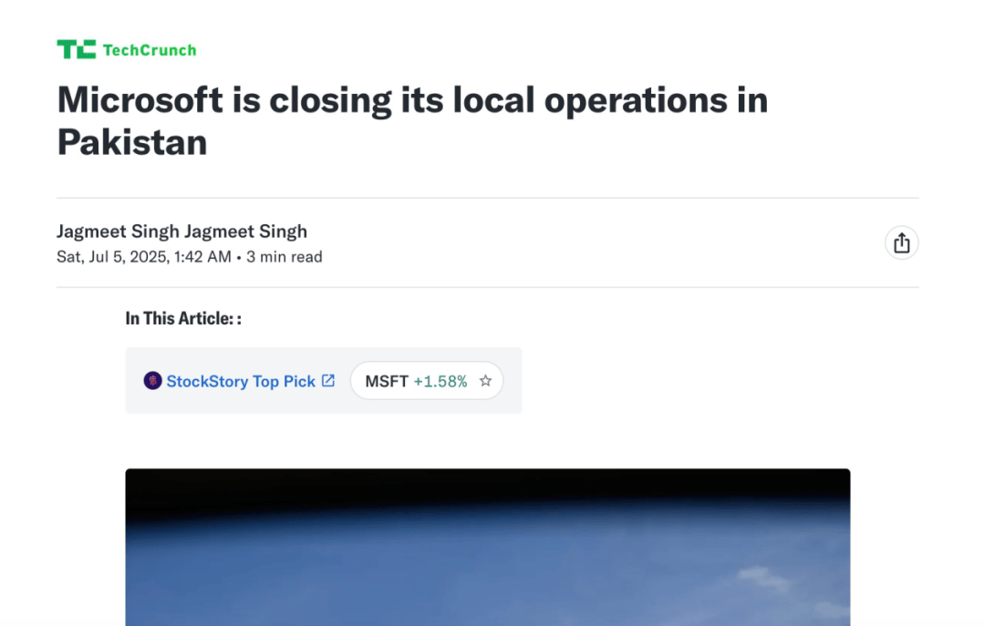 7月5日消息,据海外科技媒体TechCrunch报道,微软将关闭其在巴基斯坦的业务,标志着其在巴基斯坦 25 年业务的结束。
